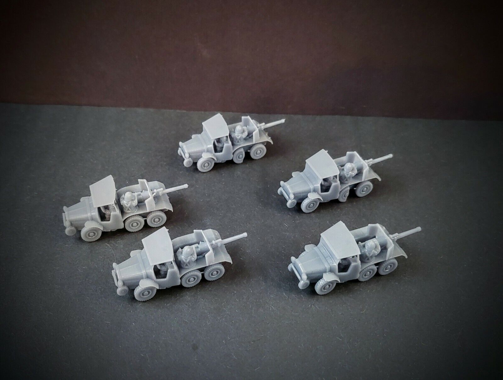 Our models are produced using 3d SLA printer technology meaning miniatures can be produced cheaper and with better details then traditional casting. We offer almost anything from any period, from World War one to vehicles of the modern era. In addition to this we can also do aircraft, infantry, support weapons, and any vehicle. We offer sales from 15mm ( 1/100th scale) to 28mm (1/56th scale) Which are popular for bolt action, Team Yankee, and Flames of War.